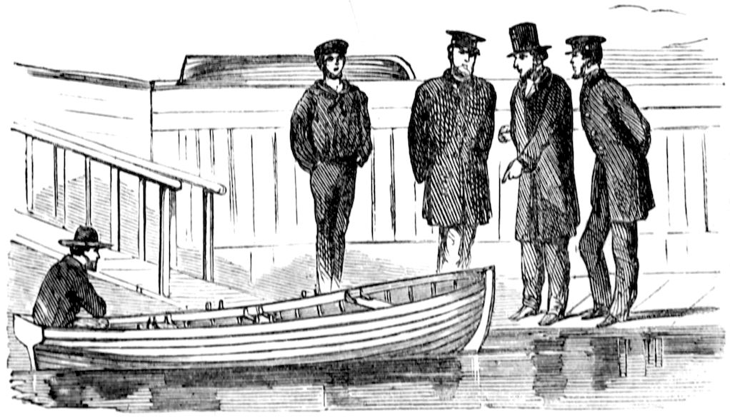 On the same afternoon that the officers started after Johnson, officers Burdett and James, accompanied by our reporter, set out in search of the yawl belonging to the sloop, which was said to be adrift off Staten Island. This they succeeded in finding, and bringing to the city, after a tedious passage on a rough sea with a cold wind. The boat contained two oars, a right boot, a tiller, and part of an old broom. George Neidlinger, the hostler at Fort Richmond, south of which the boat was found, said that shortly before six o’clock the previous morning, he had seen a man land from the boat, whom he described in such a manner as to show that Johnson might be the individual.