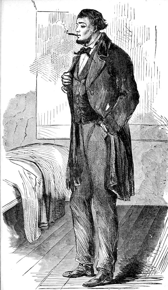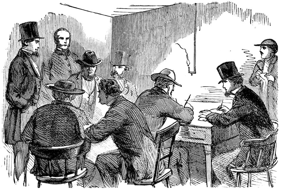 It was next ascertained that a man answering the same description had made himself conspicuous at the Vanderbilt landing, where he had indulged freely in oysters, hot gins, and eggs. He was seen on the seven o’clock boat coming up to New York, by a deck hand, who had, by his own solicitation, counted a portion of his money, which he carried in two small bags, like 9shot-bags. Here the matter rested for a short time, while the people were waiting for news from the officers at Providence. It was during this interval that our artist succeeded in procuring the sketches herewith presented.