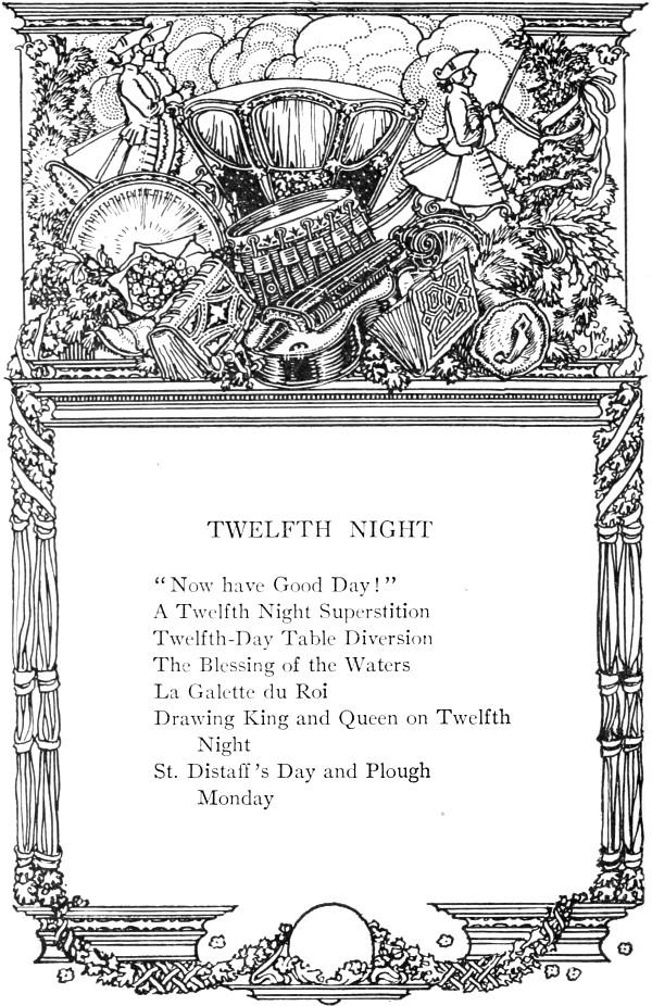 If Christmas is to be saved from desecration and kept sacred, not only to faith but to friendship, its sentiment must be revived year by year in the joyful celebration of the old rites. We have been so eager of late years to rid ourselves of superstition and "see things as they are," that we have lost that vision of the large relations of things in which alone their meaning and use is revealed. We have studied the field at our doorsteps so thoroughly that we have[Pg xi] lost sight of the landscape in which its little cup of fruitfulness is poured as into a great bowl rimmed by the horizon. One day out of three hundred and sixty-five, detached from its ancient history and isolated from the celebrations of centuries, cannot keep our hearts and hearths warm; we must rekindle the old fires and join hands with the vanished companies of friends who have kept the day and made it merry in the long ago. The echoes of ancient song and laughter give it a rich merriment, a ripe and tender wealth of associations. The mirth of one Christmas overflows into another until the sense of an unbroken joy, sinking and rising year after year like the tide of life in the fields, is borne in upon us. This sense of the unity of men in the great experiences steals back again into our hearts when we hear the old songs and read the old stories. Alexander Smith, whose book of essays, "Dreamthorp," is one of the books of the heart,—for there are books of the heart as well as books of knowledge and books of power,—kindled his imagination into a responsive glow by rereading every Christmas Day Milton's "Ode on the Morning of Christ's Nativity." When one opens the volume at this great song, it is like going into a church and hearing the organ played by unseen hands; the silence is flooded by a vast music which lifts the heart into the presence of great mysteries. But there is a time for private devotions as well as for public worship, for domestic as well as religious celebrations; and for every hour and place and mood there is a song and story. There are tender hymns for the devout, and spirited songs for those who celebrate together old days and ancient friendships; there are quaint carols for those whose hearts long for the quiet and pleasant ways of an olden time, and there are roaring catches for those whose gayety rises to the flood;[Pg xii] there are meditations for the solitary, and there are stories for the little groups about the fire.