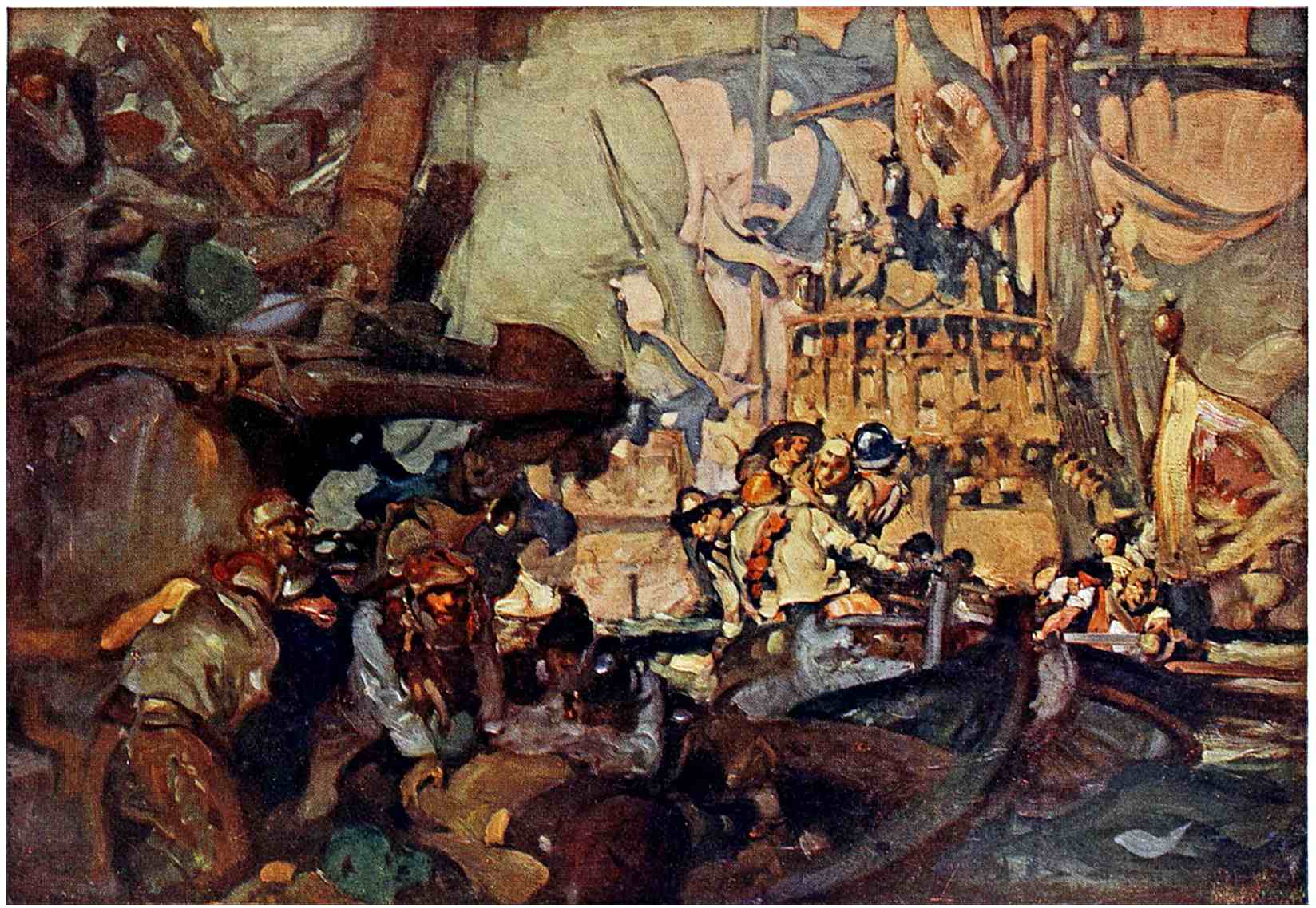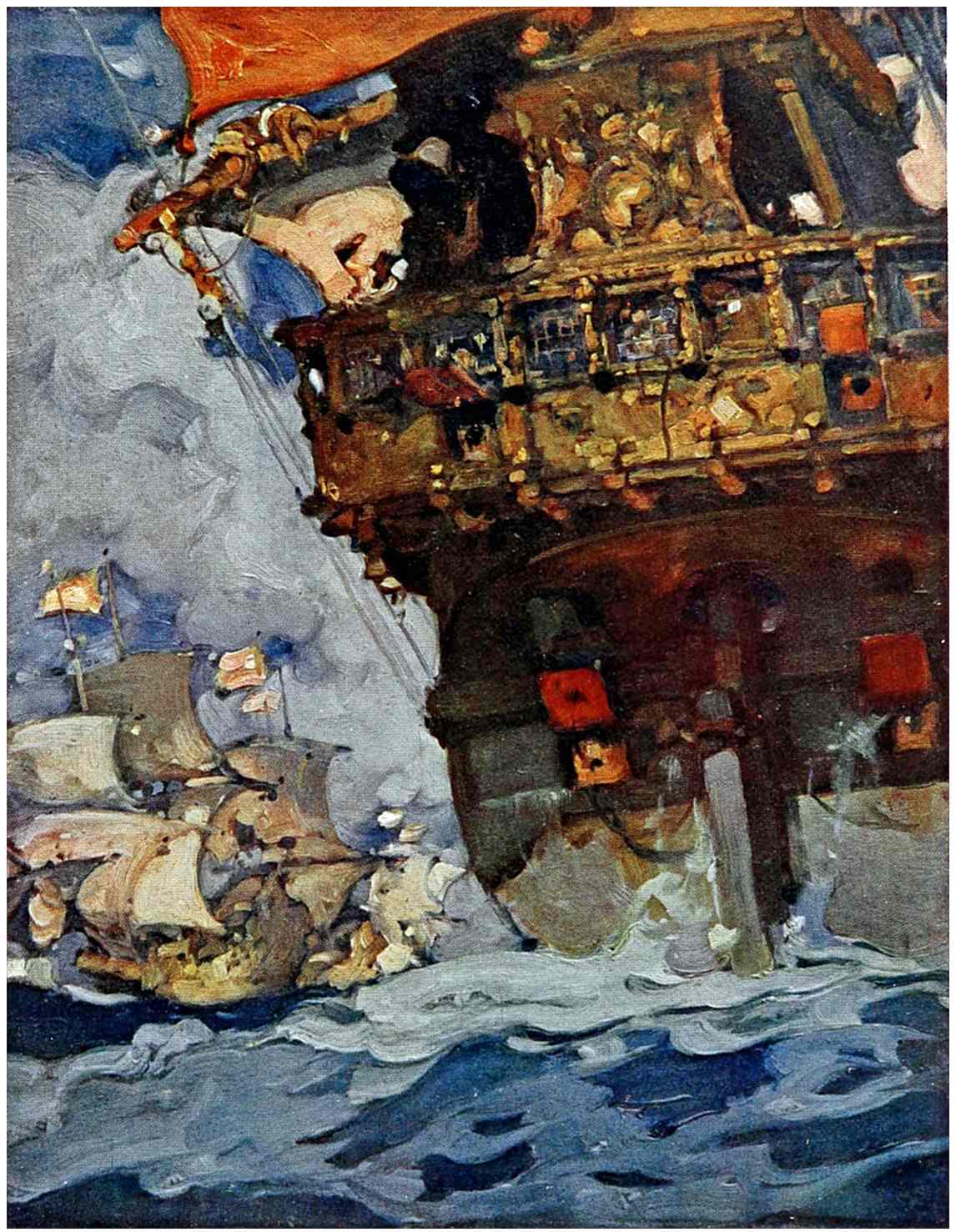 She is remembered still, but it is hardly for her own sake; her story is a part of Drake’s, and not the greatest part. Question your Elizabethan again some ten years later, and hers is no longer the name that he will give you; he will speak of things that are even nearer to his heart, and to ours; for though an Englishman will always, I suppose, lick his lips over a tale of treasure, it is the fighting and not the plunder that he is really fitted to enjoy, and in his imagination even the jewels of the Golden Hind will shine with a less bright and steady glow than the battle-lanterns of the Revenge.