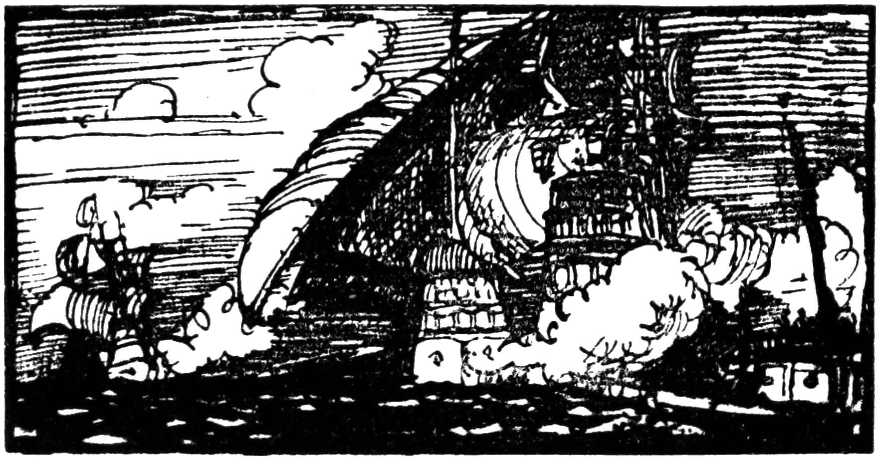 On the night of Sunday the 28th, the Lord Admiral “caused eight ships to be fired and let36 drive amongst the Spanish fleet; whereupon they were forced to let slip or cut cables at half and to set sail.” When day came, Howard stopped to take a prize, and it was the Revenge who led the last great chase northwards, pounding Sidonia himself in the huge San Martin, sinking, scattering and driving ashore his followers. “It was the hour,” says Mr Corbett, “for which Francis Drake had been born.” But glorious as it was, it was not yet the hour for which the Revenge had been built.