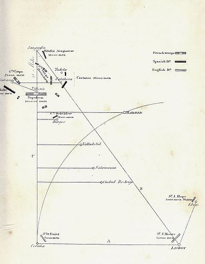 | Observations—The conduct of Napoleon and that of the English cabinet compared—The emperor’s military dispositions examined—Propriety of sir John Moore’s operations discussed—Diagram, exposing the relative positions of Spanish, French, and English armies—Propriety of sir John Moore’s retreat discussed, and the question whether he should have fallen back on Portugal or Gallicia investigated—Sir John Moore’s judgment defended; his conduct calumniated by interested men for party purposes—Eulogised by marshal Soult, by Napoleon, by the duke of Wellington | 502 | |