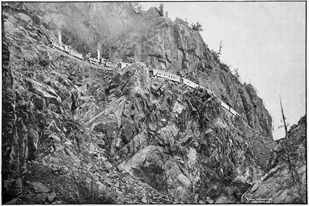THE journey "Around the Circle" on the Denver and Rio Grande Railroad, from Denver to Silverton, Silverton to Ouray, and return to Denver, or via the Denver & Rio Grande to Durango, thence over the Rio Grande Southern R. R. to Ridgway and return to Denver, briefly described in the following pages, comprises more noted and magnificent scenery than any other trip of similar length in the known world. Piercing the heart of the Rocky Mountains, crossing and recrossing the "Great Divide" between the Atlantic and Pacific slopes; penetrating five cañons, each of which is a world's wonder, and no two having the same characteristics; climbing four mountain passes by rail and one by stage; achieving grades of 211 feet to the mile; reaching heights 11,000 feet above the sea; penetrating gorges whose walls soar a half mile in perpendicular cliffs above the track; traversing fertile and picturesque valleys, watered by historic rivers; passing through Indian reservations and in sight of frontier cantonments of National troops; pausing in the midst of mining camps, where gold and silver and coal and copper are being taken from subterranean recesses; in a word, making the traveler familiar with peaks and plains, lakes and rivers, cañons and passes, mountains and mesas; with strange scenes in nature, aboriginal types of men, wonders of science and novel forms of art; surely no other journey of a thousand miles can so instruct, entertain, entrance and thrill the traveler as this trip "Around the Circle."