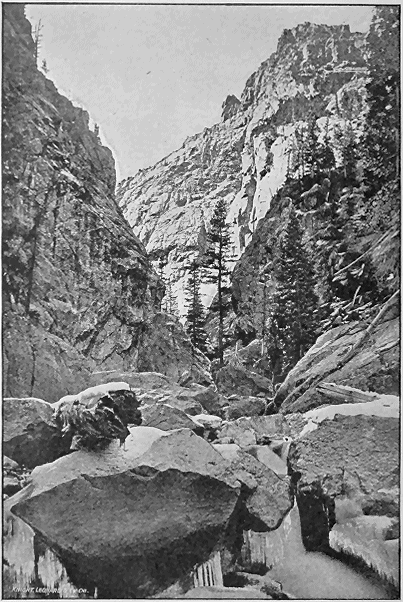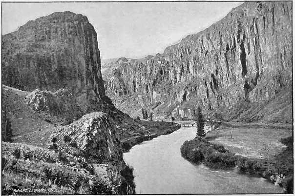 Continuing on up the main river, the valley begins to narrow down, until we are once more within the walls of a cañon which takes its name from the stream flowing through it. While this cañon is not particularly deep, its natural beauties are manifold and are sure to make a lasting and delightful impression on the beholder.