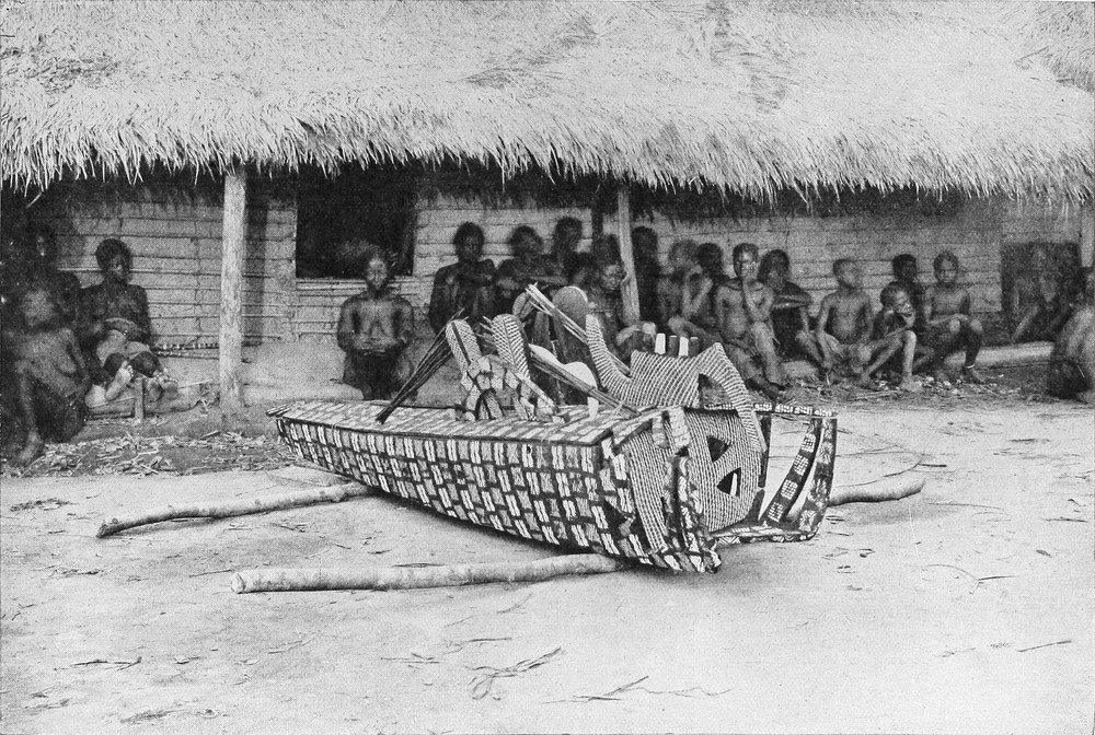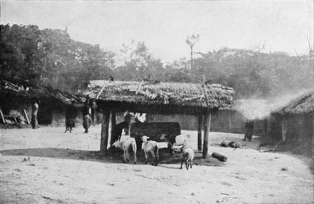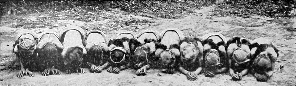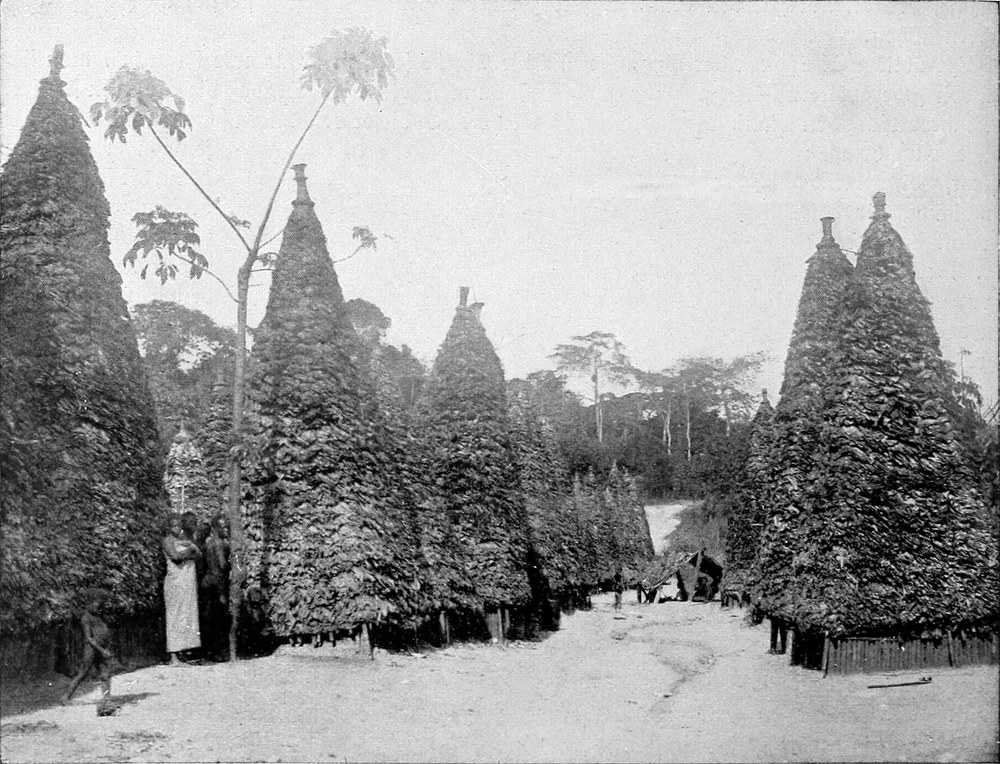 Es fällt sehr schwer, sich über die sehr verwickelten religiösen Verhältnisse der westafrikanischen Neger Klarheit zu verschaffen. Dadurch, daß sie alles, was sie umgibt, für belebt halten und unter diesen unzähligen übernatürlichen Kräften höhere und niedere Gottheiten unterscheiden, wird die Sache sehr verwickelt. Neben den Hauptgottheiten kennt man noch unzählige Scharen von Geistern, Ahnengöttern, lokalen Haus- oder Schutzgottheiten und dergleichen. Bald werden diese als Menschen, bald als Tiere oder als menschenähnliche, phantastische Ungeheuer gedacht. In der Nähe von Nsan im Ekoilande befindet sich ein kleiner See, der von den Geistern verstorbener Ekoi in Gestalt zahlreicher Krokodile und Schlangen bewohnt sein soll. Der besondere Schutzgott der Aschanti heißt Tando; er unterrichtet die Stammesmitglieder von den geheimen Anschlägen ihrer Feinde. Früher pflegte er sich gelegentlich in die Gestalt eines Knaben zu verwandeln und sich dann von den Feinden gefangennehmen zu lassen; sobald er auf diese Weise in ihr Land gekommen war, verwüstete er es durch die Pest, die er mitbrachte. Ihm ist die Treiberameise heilig. Dagegen stehen die Krokodile unter dem Schutze seiner Frau Katarwiri, eines Flußgeistes, der als sehr boshaft und fett geschildert wird. Ein sehr gefürchteter Geist der Aschanti ist der Sasabonsum, ein rotes Ungeheuer, das unterirdisch in den Tiefen der Wälder haust an den Stellen, wo die Erde rot ist, oder auch in Baumwollbäumen. In boshafter Weise überfällt es die Wanderer, nimmt sie gefangen und verzehrt sie; die rote Erde rührt von ihrem Blute her. Es wirft auch Bäume um, damit dadurch die[S. 12] Vorübergehenden erschlagen werden, hebt die Erde auf, damit die auf ihr stehenden Häuser umfallen, und treibt noch andere Grausamkeiten. — Der Kultus, den man diesen zahlreichen Göttern widmet, um sie bei guter Laune zu erhalten oder wieder zu versöhnen, ist im allgemeinen derselbe, wie wir ihn bereits bei anderen Naturvölkern kennen gelernt haben. In der Hauptsache sind es Opfer, die man ihnen darbringt in Gestalt von Lebensmitteln, zum Beispiel Getreide, Getränke, Hühner, Ziegen, seltener Rinder, Palmöl und so weiter (Abb. 75). Man schlachtet die Tiere für gewöhnlich und bestreicht mit ihrem Blute die Idole, die die Götzen darstellen sollen, reibt diese auch mit Öl ein, oder man stellt die Opfer vor ihnen auf. Die Frauen der Ibo bringen am Jahresschluß dem Aro, der Gottheit des Jahres, alte Töpfe, Kleider, Körbe und so weiter dar, in dem Glauben, daß sie damit Schmerzen, Krankheit und Unglück im kommenden Jahre von sich abwenden können. — In Dahome macht die Schlangenanbetung den wichtigsten Teil der Religion aus; die Pythonschlange gilt als das Sinnbild des Glücks und des Gedeihens. Es gibt unter der dortigen Bevölkerung verschiedene Priestersekten, in die jedes Kind, das mit einem dieser Kriechtiere in Berührung gekommen ist, aufgenommen werden muß. Auch dem Ozean bringt man Opfer in Gestalt von Getreide, Muschelgeld und Palmöl, früher brachte man ihm aus wichtigen Anlässen auch Menschenopfer dar. Die letzteren wurden — heutzutage wird dieser scheußliche Brauch wohl kaum mehr geübt — in kostbare Gewänder gekleidet und aus einem Kanu einfach ins Wasser geworfen. Auch dem bösen Geiste Sasabonsum wurden vormals von den Aschanti nach einem Erdbeben Versöhnungsopfer in Gestalt von Menschen dargebracht; beim Wiederaufbau der Häuser wurde zur Aufführung der Fundamente Menschenblut benutzt. Ganz besonders schrecklich ging es aber in dem früheren Königreich Benin im Bereiche des Nigerdeltas zu. Hier wurden den Gottheiten der Sonne, des[S. 13] Regens und der Jahre Menschenopfer dargebracht, und zwar in solchen Massen, daß man geradezu von Menschenschlächtereien sprechen konnte. Nach den Schilderungen von Augenzeugen besaß in der Blutstadt Benin jeder Häuserblock eine tiefe Grube voll abgeschlachteter Leichen und Sterbender. Überall fand man Menschenopfer umherliegen und namentlich Gekreuzigte an besonderen Baumgerüsten hängen oder begegnete ihren Schädelresten oder wenigstens Blutspuren an der Landstraße. Auch beim Tode eines Häuptlings oder wenn man ihm später einmal ins Jenseits Nachricht von seinen Angehörigen geben wollte, wurden Tausende von Opfern hinüberbefördert. Im Jahre 1897, nachdem der letzte König von Benin eine englische Gesandtschaft hatte niedermetzeln lassen, wurde die Stadt im Sturm genommen und den geschilderten Unmenschlichkeiten ein Ende bereitet.