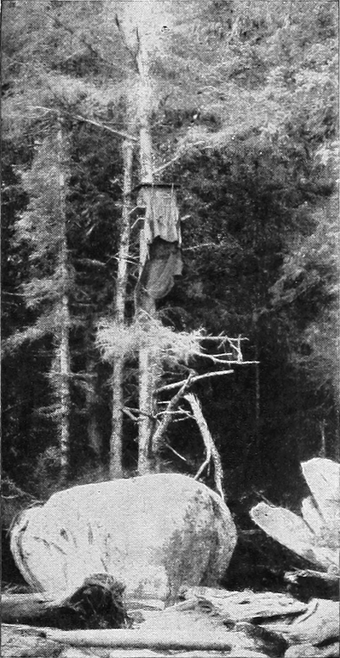 Die Beerdigungen finden für gewöhnlich um Ostern statt, wenn die Erde aufgetaut ist. Den Winter über werden die in Särge gelegten Leichen in einem kleinen Turm in der Nähe der Kirche aufbewahrt (Abb. 452). Das Wehklagen und Geheul, das Männer und Frauen über den Verlust des Toten anstimmen, hat große Ähnlichkeit mit Hundegeheul.