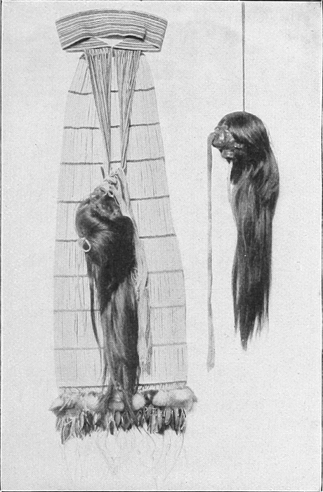 Nach dem Eintritt des Todes wird die Leiche mit Salzwasser gewaschen. Mit diesem Abwaschwasser tränkt man später das Vieh, damit es gut gedeihe. Nach dem Waschen wird die Leiche ins Freie geschafft, falls dies nicht schon vorher geschehen sein sollte. Der Weg wird dabei aber nicht durch die übliche Eingangstür genommen, sondern an einer anderen Stelle nach Aufheben der Zeltwand oder durch die Fensteröffnung. Im Freien erfolgt dann die Aufbahrung[S. 438] der Leiche. Gleichzeitig stimmen die Weiber Klagelieder an, die je nach dem Geschlecht des Verstorbenen verschieden ausfallen und eines poetischen Schwunges nicht entbehren. Neben die aufgebahrte Leiche setzen die Stammesgenossen Speisen und Getränke, die später von ihnen verzehrt werden. Bei dieser Totenfeier kommt es vielfach zu wüsten Orgien (siehe die Kunstbeilage).