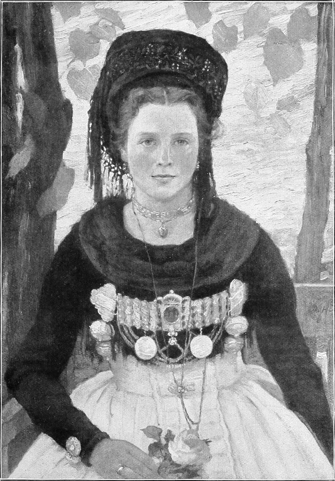 Die Werbe- und Hochzeitsgebräuche sind bei allen Balkanvölkern ziemlich dieselben, was nicht wundernehmen wird, da sie alle jahrhundertelang unter der gemeinsamen Herrschaft der Türken gestanden haben. Vor Eingehung der Ehe wird im allgemeinen die materielle Frage erörtert, was indessen nicht ausschließt, daß gelegentlich auch Neigungsheiraten vorkommen. Für gewöhnlich bedient man sich eines Vermittlers, der die wichtige Frage der Mitgift zu regeln hat. Sind die Eltern nicht imstande, alle Kosten zu tragen, so nehmen wohl auch die Brüder des Mädchens einen Teil derselben auf sich. Im allgemeinen bleiben die Söhne so lange ledig, bis alle Schwestern unter die Haube gekommen sind, zumal wenn keine großen Altersunterschiede zwischen Söhnen und Töchtern bestehen. Außerdem ist es Sitte, daß die Töchter der Reihe nach verheiratet werden, so daß eine jüngere keine Ehe eingehen darf, bevor nicht die älteren versorgt sind. Bei der Verlobung werden Ringe zwischen den beiden jungen Leuten gewechselt, während die anwesenden Bekannten sie mit wohlriechenden Blüten des Mandelbaumes überschütten und ihnen eine recht baldige „Krönung“ (das heißt Trauung) wünschen. Erfrischungen werden herumgereicht, in manchen Gegenden wird auch ein festliches Mahl eingenommen. Auf Korfu besteht die Sitte, daß ein junges Mädchen, das verlobt ist, fortan eine Menge falscher Haare anlegt, die zu beiden Seiten des Gesichts aufgetufft und mit Streifen von rotem Stoff durchflochten werden. Diese unechten Haare werden später das ganze Leben lang getragen und vererben sich von einem Geschlecht auf das andere. — In Griechenland findet sich vielfach noch die Sitte des Kinderverlöbnisses (siehe die Kunstbeilage).