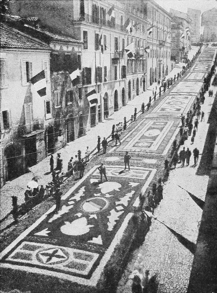 Am Sankt-Basilius-Abend, der unserem Silvesterabend entspricht, ziehen ganze Scharen festlich gekleideter Kinder und Burschen unter fröhlichen Gesängen durch die Straßen und tragen dabei auf Stangen zierliche, mit bunten Bändern geschmückte Reisigbündel, in deren Mitte ein Glöckchen hängt. Vor jedem Hause lassen sie dieses erklingen, singen Lieder zu Ehren des Heiligen und erwarten von der Hausfrau ein kleines Geschenk in Gestalt von Äpfeln, Nüssen, Feigen oder Eiern, wofür sie ihr ein farbiges Seidenbändchen von dem „Strauße“ einhändigen, das ihr Glück bringen soll. In dieser Nacht vergißt wohl keiner, eine Granatfrucht in den Mondschein zu legen und sie am anderen Morgen in der Kirche einsegnen zu lassen. Nach der Rückkehr aus dem Gotteshause schleudert er die Frucht kräftig zu Boden, so daß sie zerspringt, ruft dabei aus: „Möge das Haus so reich an Segen sein wie dieser Granatapfel an Samen!“ und fügt, gleichsam die Hausgeister beschwörend, hinzu: „Ihr aber, Flöhe, Wanzen, Ungeziefer und Unglück aller Art, fliehet und lasset Gesundheit, Glück und Freude herein!“ — Alles, was am ersten Tage des Jahres geschieht, wird als Vorbedeutung für dasselbe ausgelegt. In den Neujahrskuchen, von dem jedes Familienmitglied, selbst der Säugling, ein Stück erhält, bäckt man eine Münze hinein; wem sie mit seinem Stück zuteil wird, der kann auf Glück rechnen. Ein Stück des Kuchens wird für den Hausaltar, das heißt die Heiligenbilder in der Stubenecke, zurückgelegt. Ein Teil von ihm wird den Armen gegeben, die mit großen Körben bettelnd von Haus zu Haus[S. 398] gehen und reichlich beschenkt werden. Jeder sucht einem anderen irgendein Geschenk zu machen, und wäre es auch nur eine wertlose Haselnuß; selbst die Bettler versäumen nicht, von ihrem Almosen an andere abzugeben. Diese Gebefreudigkeit ist sicherlich als ein Rest der strenae der alten Römer zu deuten.