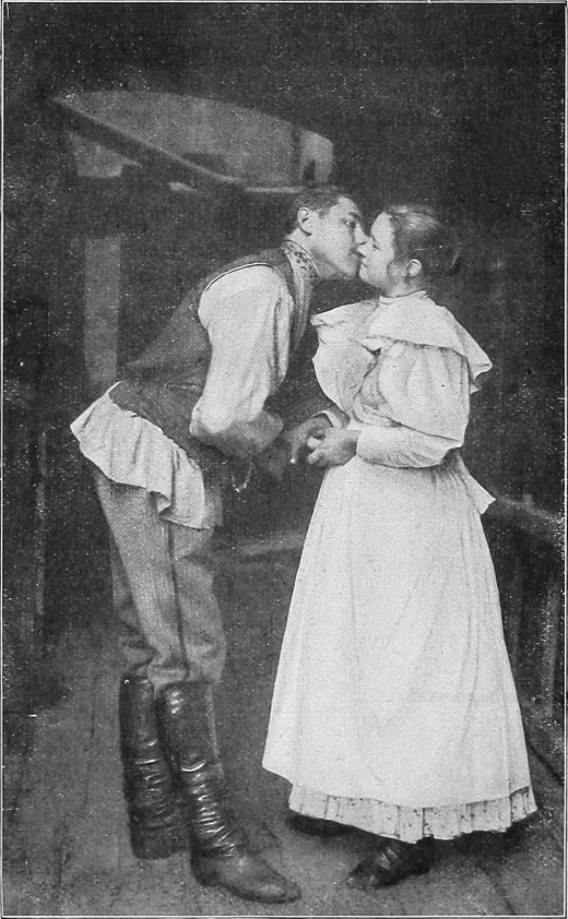 Für die heranwachsende Jugend beider Geschlechter bieten sich viele Gelegenheiten zusammenzukommen und miteinander anzuknüpfen; so die zahlreichen Feste mit ihren Lustbarkeiten, von denen wir oben bereits sprachen, vor allem auch die Reigentänze, bei denen meistens die ungezügelte Leidenschaft zum Durchbruch kommt, sowie die Zeiten des Pilz- und Beerensammelns in den Wäldern. Da die sittlichen Anschauungen beim russischen Landvolk (und nicht minder bei der vornehmen Stadtbevölkerung) ziemlich lax sind, so feiert die Liebe in diesen „Nächten des Rausches“, wie sie heißen, ihre Orgien, aber selten führt dies zu einer festen Verbindung. Denn die Ehe ist nach Ansicht des russischen Bauern weniger eine Sache der Neigung als vielmehr ein richtiges Kaufgeschäft; bei dem patriarchalischen Zusammenleben in einer großen Familie erwartet der Vater, daß sein Sohn ihm eine tüchtige, gesunde, leistungsfähige Frau als Arbeitskraft zuführt. Bis in die Neuzeit herein gab es in verschiedenen Gegenden Rußlands noch wirkliche Heiratsmärkte, auf denen die jungen Männer die auf dem Markte oder dem Kirchplatz aufgestellten Mädchen in Augenschein nahmen und die ihnen passend erscheinenden aussuchten. Heutzutage ist diese Sitte, die sich übrigens auch bei anderen slawischen Stämmen findet, mehr und mehr in Abnahme gekommen. Jetzt kommt vielmehr eine Heirat meistens durch eine gewerbsmäßige Vermittlerin, die Svacha, zustande. Mit den Worten: „Wir haben einen Käufer, ihr eine Ware; wollt ihr nicht eure Ware verkaufen?“ findet sich die[S. 382] Svacha im Hause der Eltern der Zukünftigen ein und fängt ein regelrechtes Feilschen um den Kaufpreis an, der nicht allein in Geld, sondern auch in Pelzwerk, Stiefeln, Branntwein, Fleisch, Getreide und anderen Gegenständen besteht. Wenn man sich endlich auch über den Tag der Hochzeit geeinigt hat — die Vermittlerin spielt gleichzeitig die Rolle einer Wahrsagerin, die aus den Karten einen für die Ehe glückbringenden Tag herausliest — wird der Handel durch Handschlag und ein sich daran anschließendes Zechgelage festgemacht. Das Volk nennt dies „die Braut vertrinken“. Die Verlobung (Abb. 399) ist sodann eine recht feierliche Handlung, bei der der Bräutigam seiner Auserwählten neben Brot, Salz und Mandelkuchen noch einen mit Türkisen besetzten Ring überreicht. Dieses Unterpfand der versprochenen Ehe wird von der Braut und ihrer Familie in hohen Ehren gehalten und gleichsam als Erbstück aufbewahrt, darf aber nie wieder zu demselben Zweck benutzt werden.