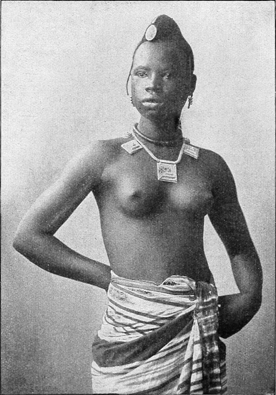Der Typus (Abb. 2) der westafrikanischen Neger gleicht im allgemeinen dem der Sudan- und Bantuneger, wie wir ihn bereits geschildert haben, so daß wir von einer Wiederholung hier absehen können. Natürlich hat er durch die langjährigen Vermischungen mit den Fulbe und Haussa, desgleichen mit den in früheren Jahrhunderten eingewanderten Portugiesen vielfach eine Veränderung, oft genug zu seinem Besten, erfahren.