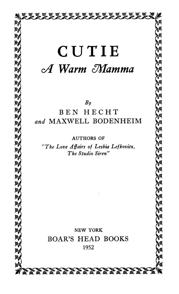 In 1924 “Cutie” appeared in different issues of the Chicago Literary Times which Ben Hecht and I edited. We issued this paper in tabloid form, with streamers and scareheads; with poetry, prose and the other arts treated in a breezy, jovial, unassuming or unpretentiously serious way. If a creation was in our opinion exceedingly minor, we dismissed it quietly and avoided the poor joke of demolishing a small target with a broadside. We were never patronizing, dry, lofty, irascible or pontifical. Again, when creations were, quite frankly, meant to be only commercial or surfacely entertaining, we did not scoff at them for failing to be esthetic. In other words, we violated all of the sacred rules of the United Professional Highbrow Critics Union.