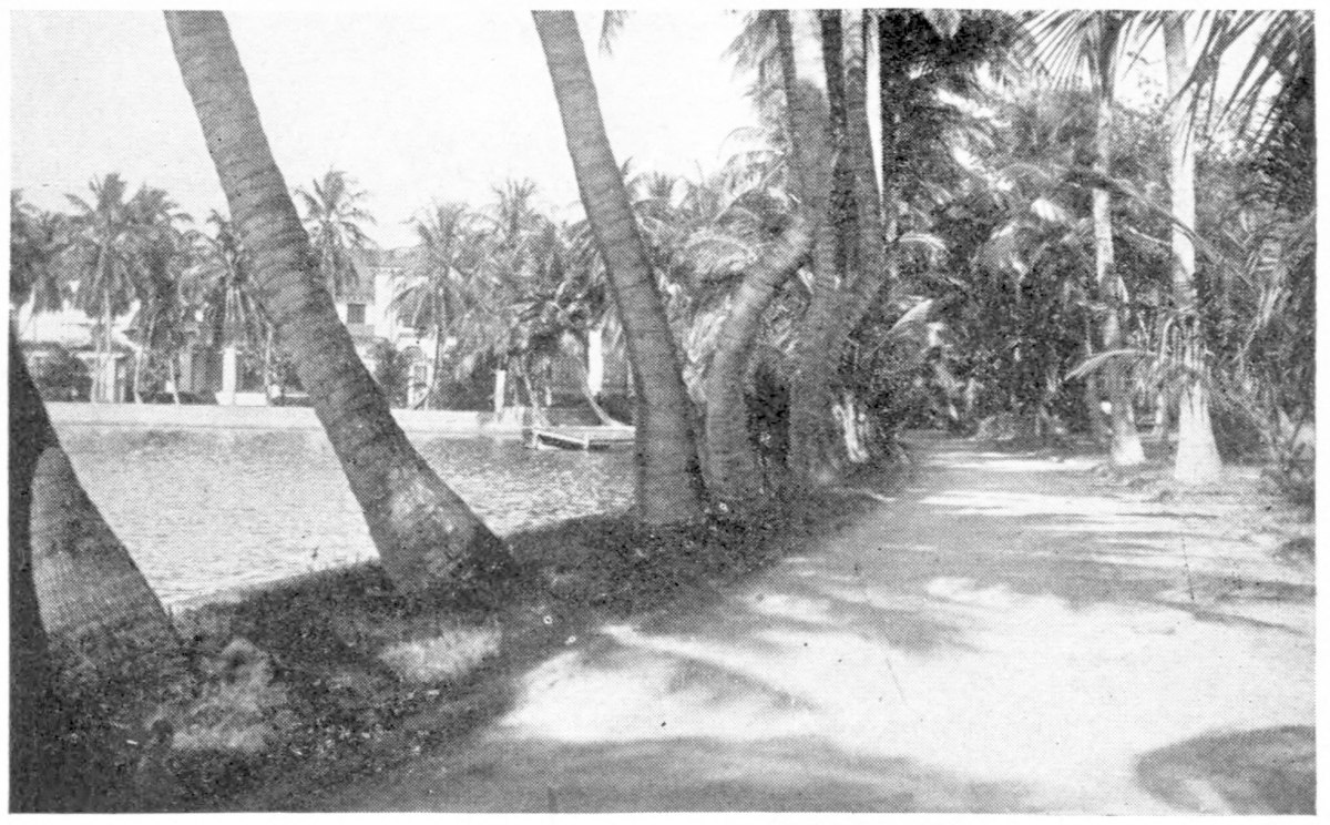 The dredging operations which had transferred sand from the bottom of Biscayne Bay to the top of Miami Beach had left several unsightly mud banks protruding a few inches from the surface of the bay. Fisher surrounded these mud banks with bulkheads and pumped more mud into them.{181} The result was seven beautiful islands, most of which are already shaded by palm groves and dotted with simple but beautiful homes costing about thirty dollars a square inch. They are easy of access, since they are connected with the mainland or the causeway.