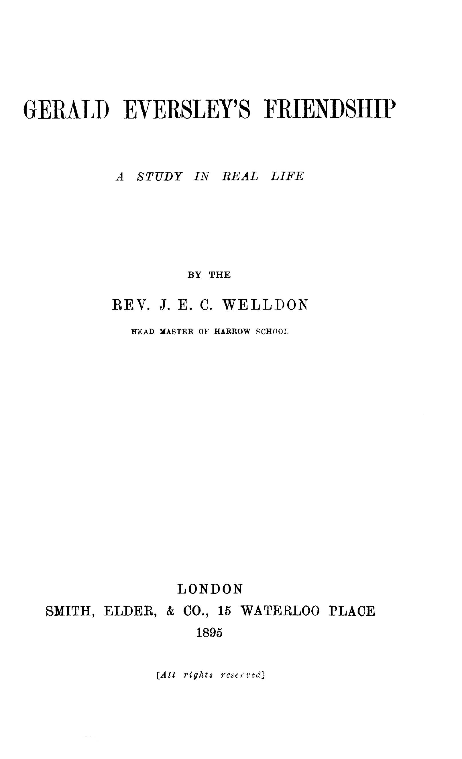 Title: Gerald Eversley's Friendship: A Study in Real Life