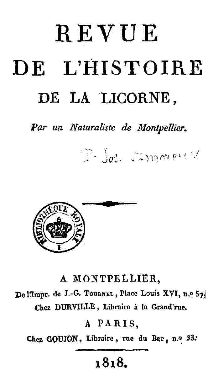 Title: Revue de l'histoire de la Licorne, par un naturaliste de Montpellier
