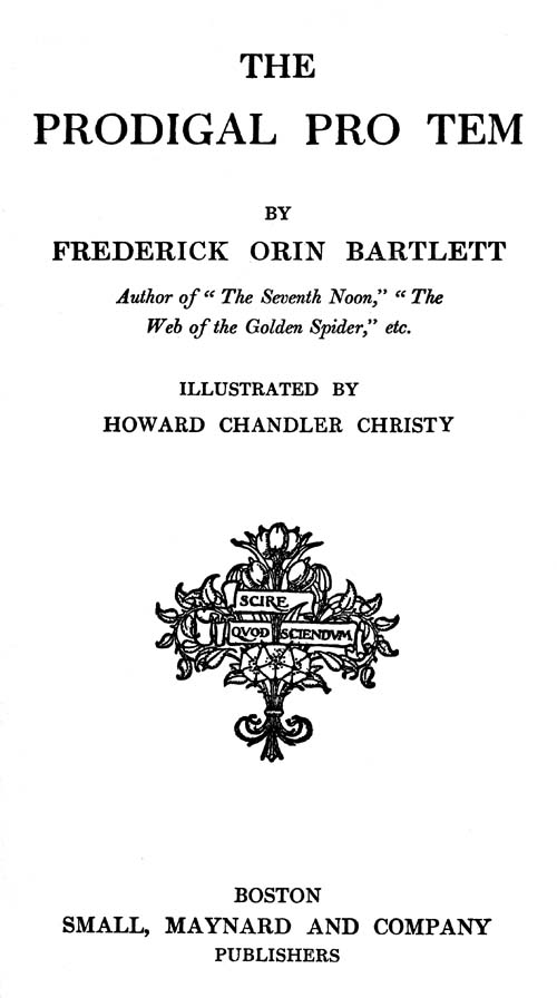 [327]Upon the hill-top they found great banners of purple and gold waving before their eyes against a background of blue and green. Below them the verdure of the rolling fields and maple clumps were also tinted with gold. The air was soft, and yet it sparkled as though fine gold were being sifted down from above. A wonderful world, and they two stood alone in it. Populous cities subsiding their turmoil; men and women going about the ordinary routine of their lives; ships putting to sea and men being carried to hospitals—all those things there might be for others outside the circumference of their eyes, but to them mere phantasies, pleasant and unpleasant. They stood alone here and the fact of grappling kingdoms and great deeds elsewhere were but the tawdriest distant incidents.