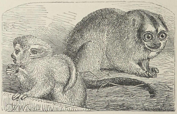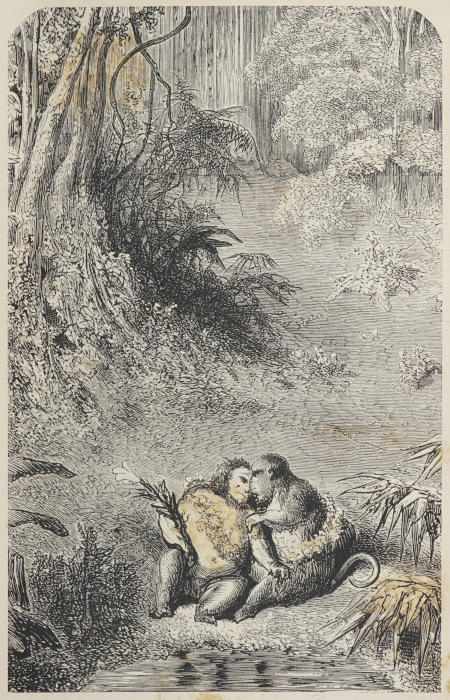 | Clouds upon clouds of apes, of all forms, colours, and sizes, clambering up the trees, rolling themselves among the branches like squirrels, or taking possession of the ground about me | 30 |