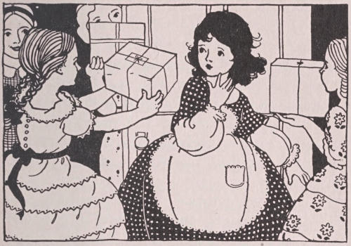 “As we went up, one by one, the smallest first, to get our treat, Santa asked each one of us to recite something for him. The smaller children knew verses out of their readers, and some of us recited the pieces we had said earlier in the afternoon. But how we all laughed when Longford Henlen, who[250] was the tallest boy in school, couldn’t think of anything to say but,