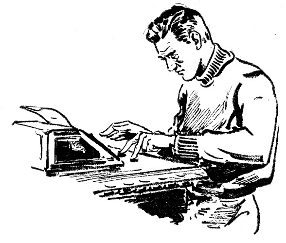 The tenseness increased. The shorthand scrawls became fewer and fewer and disappeared entirely. The paper was forgotten, and the pencil dropped from Gene's fingers.