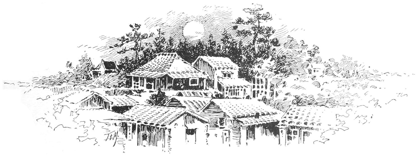 Your visit to Japan is likely to be a succession of surprises. Our discovery of the country is so recent that the large amount of literature on the subject frequently fails to change your childhood impression of that distant land. European travellers often entertain us with their ideas of America as an uncultivated waste with an occasional hastily constructed town, in which the red man is still to be16 seen; and my notions of the land of the Mikado were somewhat similar. I could never think of the Orient without thinking of the mushroom hat; and for me Japan meant a succession of bamboo huts, almond-eyed men with long and low-hanging moustaches, an occasional china cup, and now and then a strangely decorated fan. I was not at all sure that it was a hospitable shore to visit; I understood that heads were removed there upon the slightest provocation. My earliest knowledge was gained from the paper lanterns that were the delight of Fourth-of-July celebrations, and those remarkably adorned napkins familiar to patrons of church fairs. I was also frequently called upon to make Sunday-School contributions17 for the conversion of these abandoned souls, and have vivid recollections of listening to many addresses by daring spirits, who had actually returned from the dangerous soil. After such occasions as these, I always looked upon the principal occupation of the Japanese as the stoning of missionaries. As I grew older, I tried to educate myself into different ideas, but all the books that I read, and even an occasional Japanese friend that I made, did not succeed in doing away with my childish fancies.