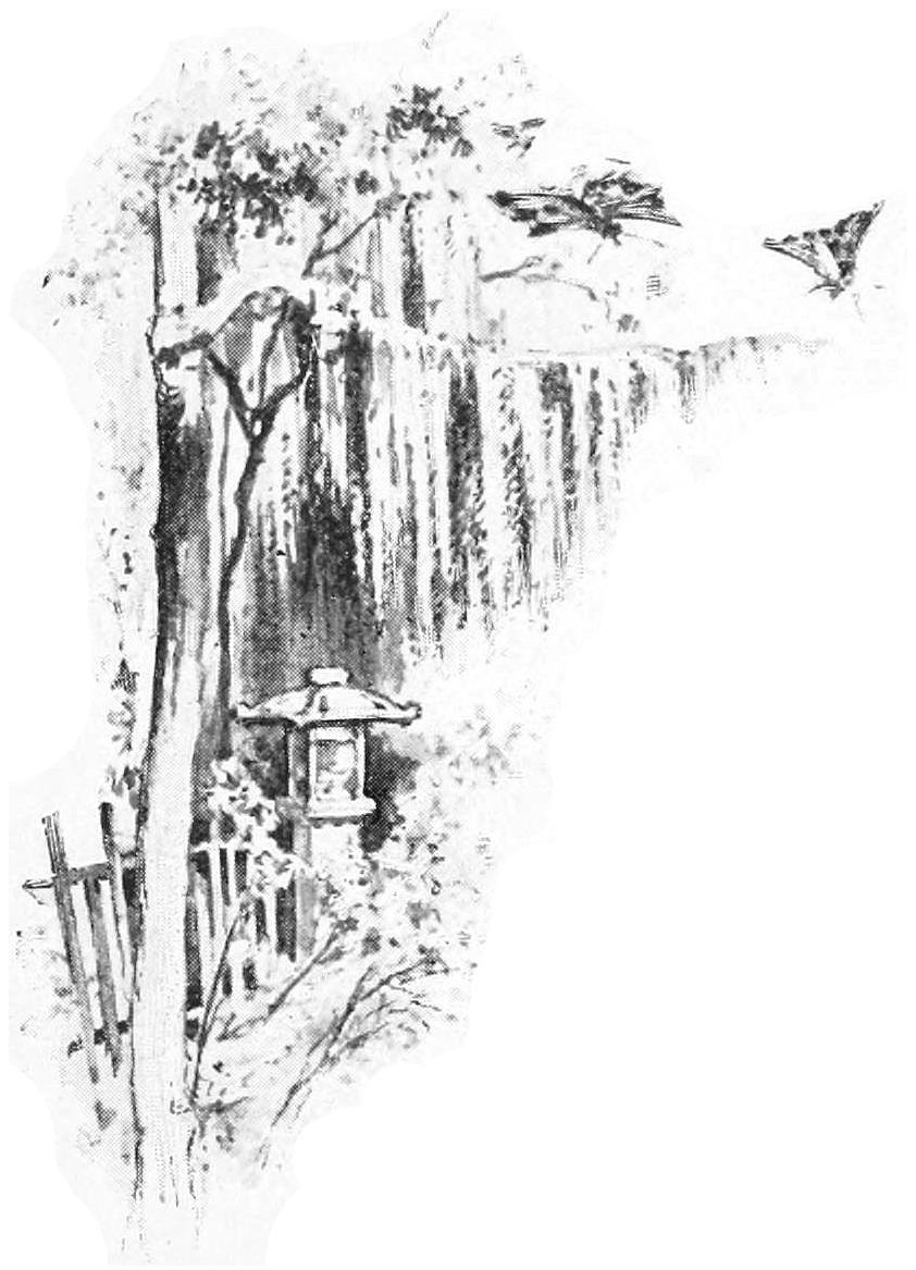 After a little further conversation, I decided to spend a few moments this way, and so stepped into the jinrikisha. He started off in high glee, and ran at a pace that would have terrified me had any other than Eba held the shafts. One or two small children who were so unfortunate as to be in his way were overturned with a single thrust of his arm and went rolling over into the gutter. Eba laughed loudly at his little joke, and shouted261 lustily to Cho, who passed us with a perplexed and disapproving shake of the head. Finally we drew up before a florist’s shop, and Eba proudly led the way to the shrine of his peculiar pilgrimage.