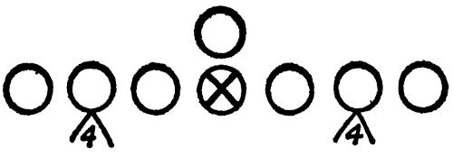 Figure 144 illustrates our Eye-Closer Drill with the offense running its middle attack and the linebackers in particular reacting to every situation they are likely to encounter in a game.