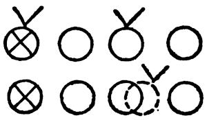 Figure 143 illustrates four large dummies, a line of ball carriers (O) and a line of tacklers (X). The ball carrier either fakes at one hole and goes through the next one, or goes through the first hole trying to beat the tackler. The linebacker tries to keep leverage on the ball carrier, trying to meet him in the hole. The tackler must be careful he does not over-run the ball carrier.