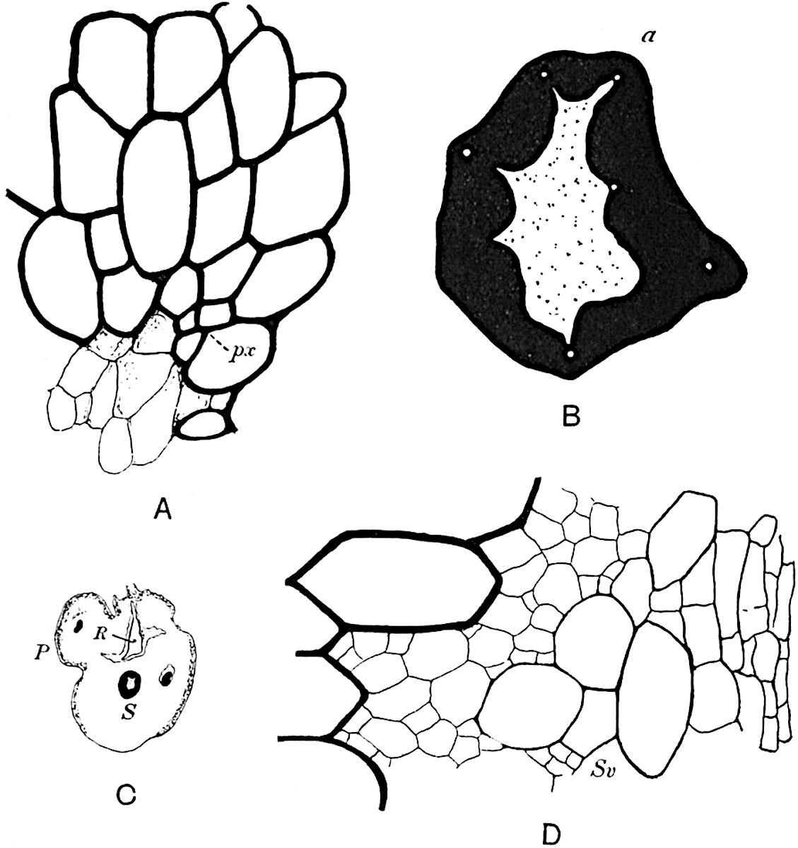I wish to thank my colleague, Mr A. G. Tansley, for placing at my disposal several blocks originally published in the pages of the New Phytologist. To Professor Bertrand of Lille and to his son Dr Paul Bertrand I am indebted for several prints andvii descriptive notes of specimens in their possession. My friends Dr Nathorst of Stockholm and Dr Zeiller of Paris have generously responded to my requests for information on various points. I wish especially to thank Dr Kidston for several excellent prints of specimens in his collection and for the loan of sections. I have profited by more than one examination of his splendid collection at Stirling. Professor Weiss has generously allowed me to borrow sections from the Manchester University collections, more especially several which have been reproduced in the chapter devoted to the genus Lepidodendron. To Professor F. W. Oliver my thanks are due for the loan of sections from the collection under his charge at University College. I have pleasure also in thanking Dr Scott, not only for lending me sections of a Lepidodendron and for allowing me to use some drawings of Miadesmia originally made by Mrs Scott for reproduction in his invaluable book, Studies in Fossil Botany, but for kindly undertaking the laborious task of reading the proofs of this volume. It would be unfair to express my gratitude to Dr Scott for many helpful suggestions and criticisms, without explicitly stating that thanks to a friend for reading proofs must not be interpreted as an attempt to claim his support for all statements or views expressed. The General Editor of the Series, Mr A. E. Shipley, has also kindly read the proofs. I am under obligations also for assistance of various kinds to Prof. Thomas of Auckland, New Zealand, to Mr Boodle of Kew, to Mr D. M. S. Watson of Manchester, to Mr T. G. Hill of University College, and to Mr Gordon of Emmanuel College, Cambridge. I am indebted to the kind offices of Miss M. C. Knowles for the photograph of the specimen of Archaeopteris hibernica in the Irish National Museum, Dublin, reproduced on page 561.
