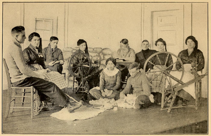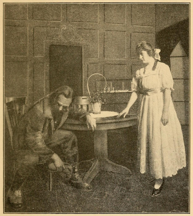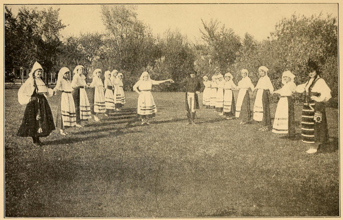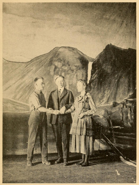 One day, about three weeks before the Christmas holidays, two young men came to see me. I shall never forget the incident because to me it marked one of the most fascinating episodes in the social life of country people. One of the young men was tall with broad shoulders and had light hair and grey eyes. The other was of medium height and had dark hair. His home was in Iceland. That they both had something important to say was evident from the expression on their faces. After a few moment’s hesitation, they told me they had thought out an idea for a play. Both of them were brimful of enthusiasm in regard to it. Whether or not they could produce it was a question. An obstacle stood in the way. Most of the scenes[4] were laid in Iceland. And what playhouse or village hall, especially a country theater, ever owned any scenery depicting home life, snow-capped mountains, and landscapes in that far-away region? Above all, there was no money to buy any, either.