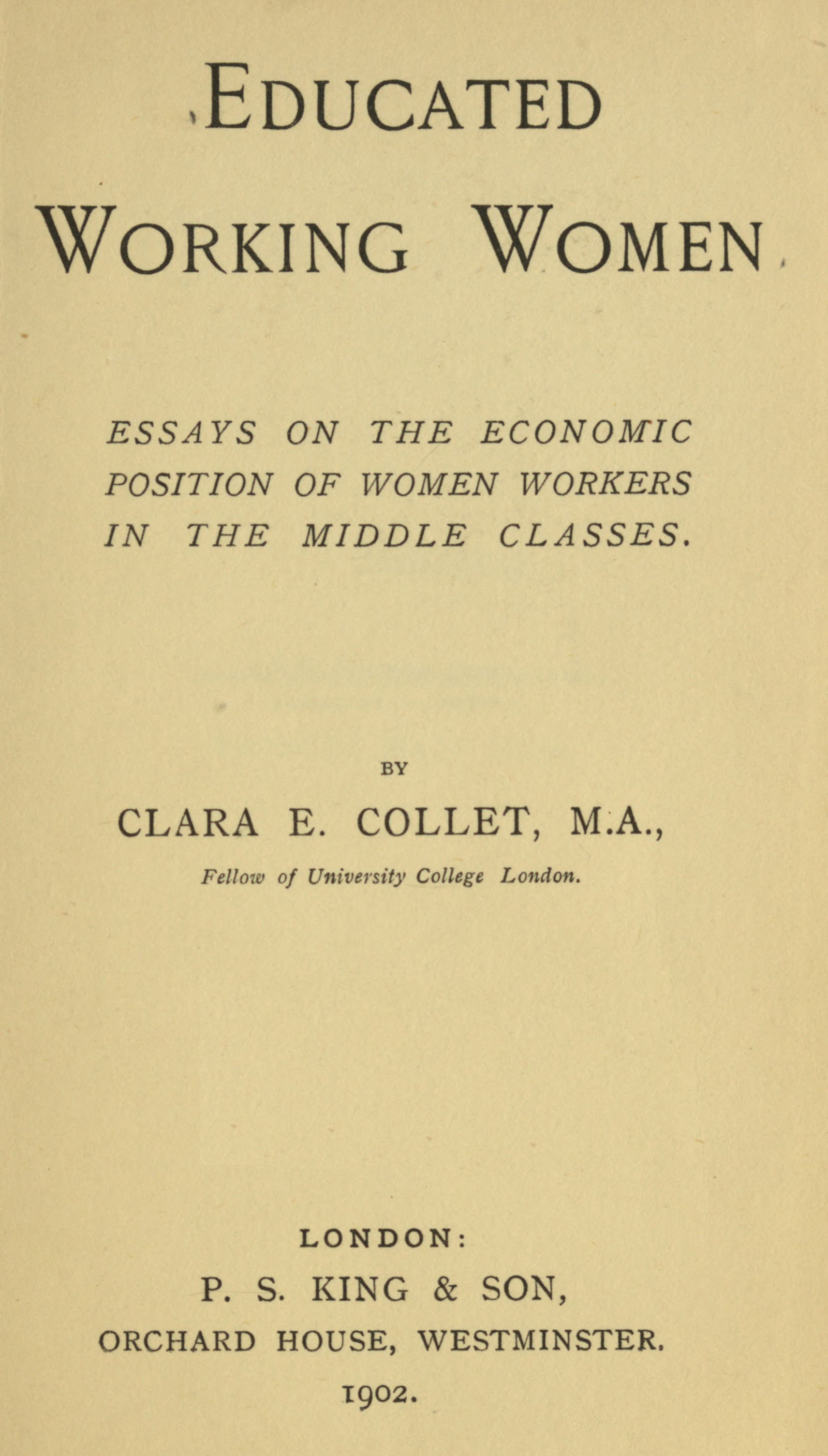 ESSAYS ON THE ECONOMIC POSITION OF WOMEN WORKERS IN THE MIDDLE CLASSES.