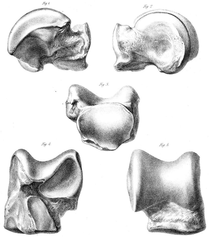 Fig. 1. Megatherium. ⅓ Nat. Size. Fig: 2. Scelidotherium. ⅔ Nat. Size. Fig. 3–6, Mylodon.? ⅔ Nat. Size.