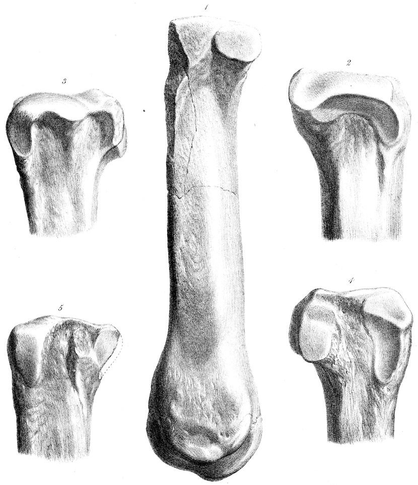 | Fig. 5, 6, and 7. Femur of Scelidotherium. | |