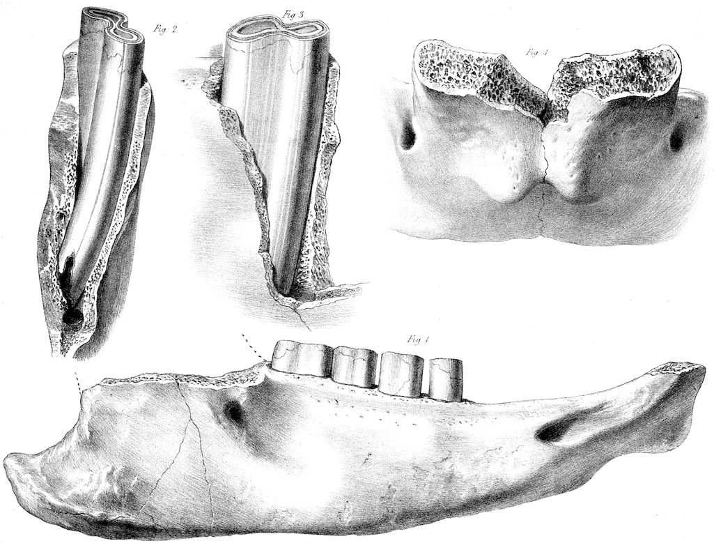 | Fig. 4. Section of lower jaw and molar teeth, Scelidotherium. | |