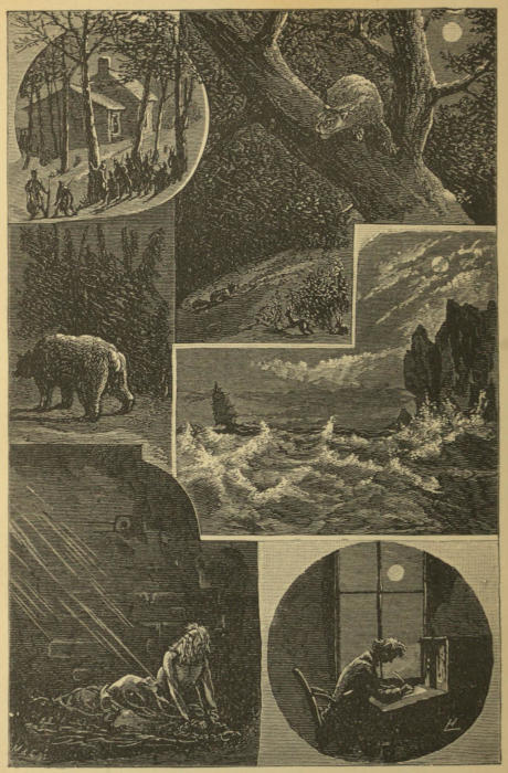 “Now return it to its place and follow me.” And Rudolph returns the weapon, dripping, to its place[152] upon the wall, and follows back through the long galleries and corridors, and down the marble stairs, and out and away from the palace, and out and away from the city—away to a cave in the mountains. And the personage in black again commands, “Stay here and bide your time.”