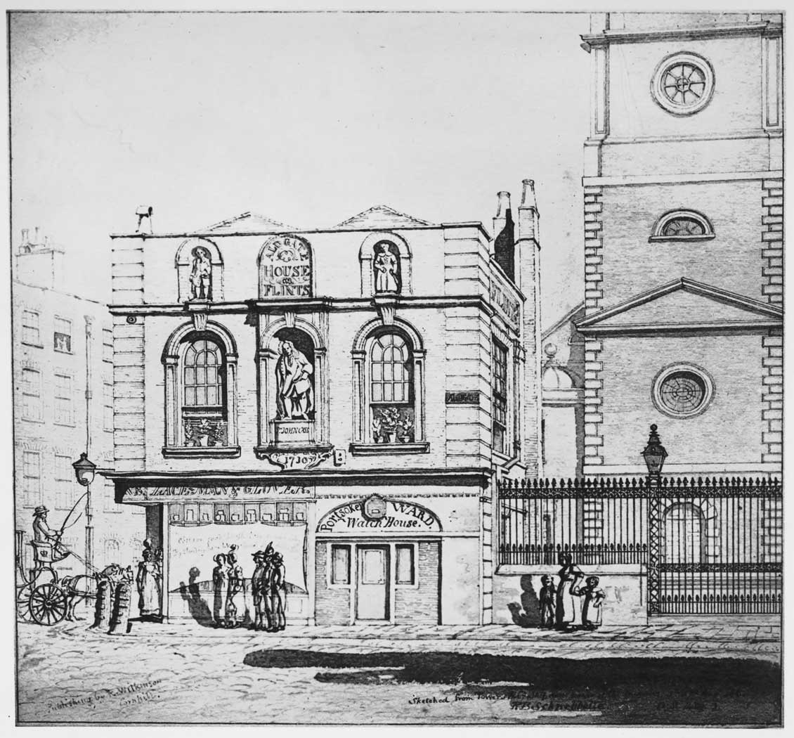 73. ALDGATE PARISH SCHOOL AND WATCH-HOUSE AND TOWER OF CHURCH