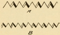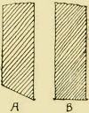 (B.) The care of the brushes is an important part of the work of those who use them, as neglect or carelessness may destroy a valuable brush overnight. Unless a brush is going to be used again the next day, it is always best to clean it thoroughly. If a stain, filling, paint, or varnish brush, use gasolene or turpentine, but if a shellac brush, use wood alcohol, cleaning off all the small particles. To obtain the best results, all brushes should be washed in hot, soapy water, and afterward rinsed in clean water; in general, however, this latter precaution may be dispensed with, unless the brushes are to be laid away indefinitely. Unless the above precautions have been taken, care should be taken that shellac and varnish brushes are not changed from one to the other. Never allow a brush to stand on its side for more than a few minutes at a time, as a wrong direction is easily given the bristles, and the brushes may be quickly destroyed by a little carelessness or negligence.
