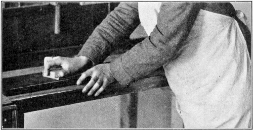 Fig. 99.—Method of Grasping Sandpaper in Rubbing Down Shellac