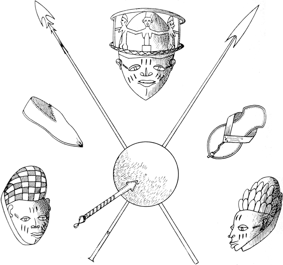 | Fetischmasken, Schuhe, Fächer und Lanzen aus dem