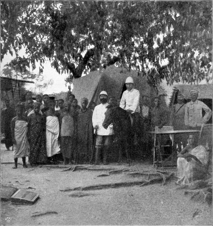 Am 7. Februar 1899 war ich mit den Vorbereitungen fertig und konnte somit am 8. Februar meine Abreise von Berlin ausführen. Da der Dampfer erst am 11. Februar abfahren sollte, hatte ich auch in Hamburg noch Zeit genug, die Herren, an welche ich Empfehlungsschreiben hatte, zu besuchen. Auch hier erfuhr ich noch manches, das für meine Reise wertvoll war; so habe ich besonders den Herren Thormählen, Jantzen und Rhode noch für das[S. 3] Interesse zu danken, welches sie meiner Expedition entgegenbrachten. Der Zufall wollte es, daß damals auch der ehemalige Gouverneur von Kamerun, Excellenz v. Soden, Geheimrat Prof. Dr. Wohltmann und Herr Upmann sich in Hamburg aufhielten, von denen ganz besonders die beiden erstgenannten Herren in der Lage waren, mich tiefer in die Verhältnisse Kameruns einzuweihen, und dank ihrer Liebenswürdigkeit sollte ich noch später viel davon profitieren.