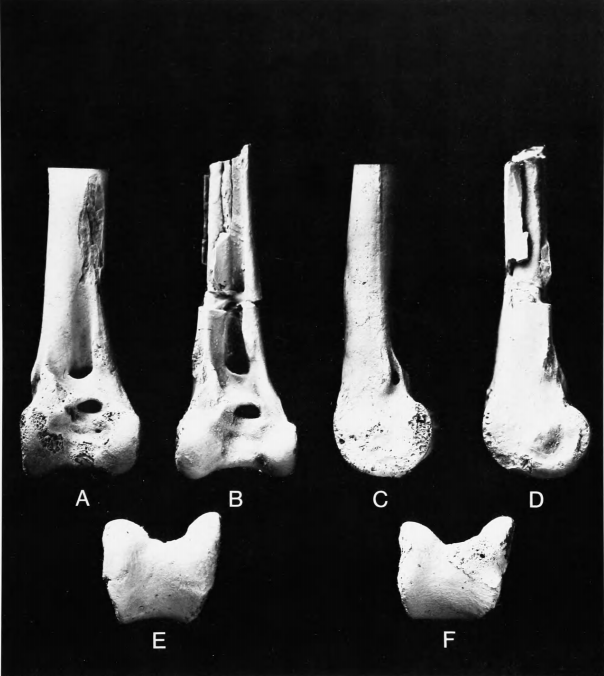 Measurements (in mm).—Humerus: distal width 19 mm, depth through dorsal condyle 9.7, width of shaft at proximal extent of brachial fossa 11.0; greatest proximal diameter of radius 7.0.