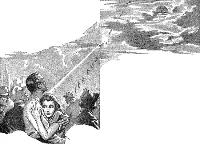 His secretary—herself a replacement of the man who had been with him for ten years—seemed to wait for him to go on, but he only nodded curtly and switched off. There were other people to see and talk to, but suddenly he felt it impossible to face them, to stare into their eyes. He let the chair carry him silently, and once in his office, he turned on the door lock to insure privacy. Then he stared out through the transparent wall at the spectacle the heavens offered.