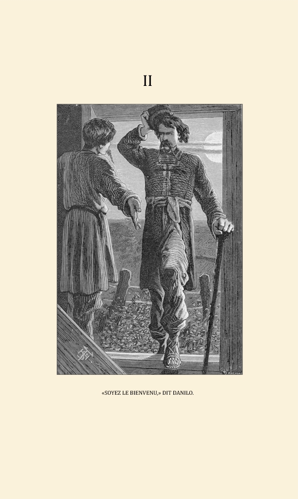 Maître Danilo et ses amis furent frappés de tout cela; mais les Ukrainiens savent garder leurs impressions pour eux-mêmes, et ils n’en firent rien voir. Ils reçurent le voyageur comme tout voyageur doit être reçu dans une honnête maison, avec cordialité et prévenance. On le plaça près d’une table, et on s’empressa de lui offrir quelques rafraîchissements.