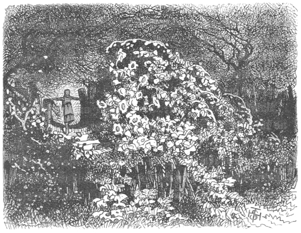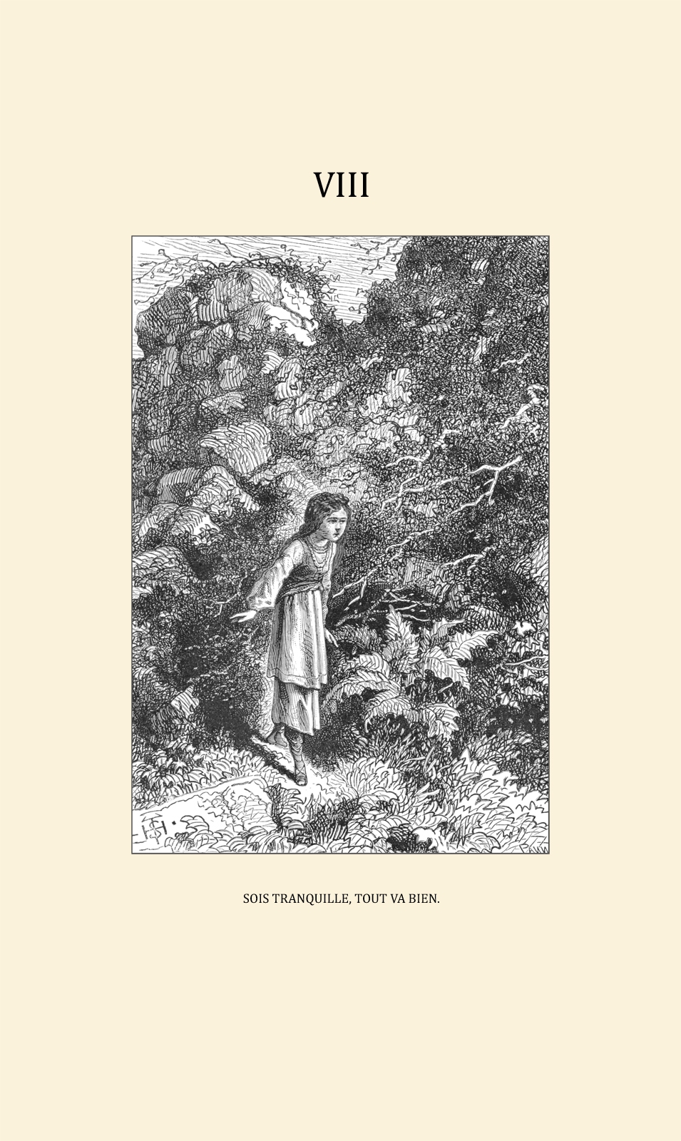 Tout entière à son ardente prière, et au moment où elle disait: «Seigneur, faites que je le revoie encore,» 257 elle crut rêver, elle crut entendre le feuillage s’agiter, les branches craquer. Mais non, elle ne rêvait pas, le bruit venait bien de là, tout près, à quelques pas d’elle; ses joues se couvrirent d’une subite rougeur. Ses yeux regardèrent du côté du bruit. Les branches s’écartèrent tout à fait, et la figure de son grand ami, éclairée par la blanche lune qui venait de se lever, lui apparut entre le feuillage mouvant. Dieu l’avait donc exaucée. Mais était-ce bien le grand ami, ou n’était-ce que son ombre? Si pâle était sa figure que le cri de joie qui allait sortir du cœur de l’enfant expira sur ses lèvres.