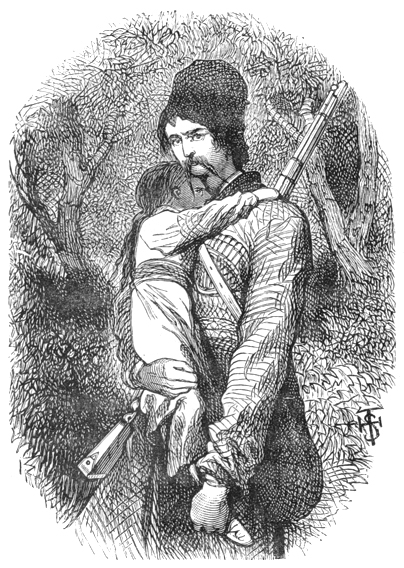 Tout à coup deux bras musculeux écartèrent encore le feuillage. La petite fille, surprise, se jeta devant son grand ami qu’elle croyait menacé.