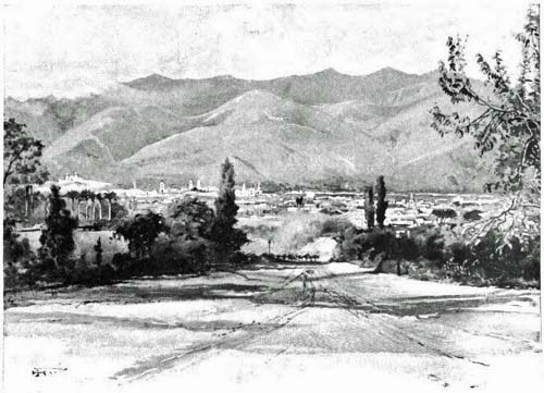 On the corner of the principal plaza stands the cathedral, with a tower. Ten soldiers took refuge in this tower four years ago, during the last[246] revolution, and they made so determined a fight from that point of vantage that in order to dislodge them it was found necessary to build a fire in the tower and smoke them out with the fumes of sulphur. These ten soldiers were the last to make a stand within the city, and when they fell, from the top of the tower, smothered to death, the revolution was at an end. This incident of warfare is of value when you contrast the thing done with its environment, and know that next to the cathedral-tower are confectionery-shops such as you find on Regent Street or upper Broadway, that electric lights surround the cathedral, and that tram-cars run past it on rails sunk below the surface of the roadway and over a better street than any to be found in New York city.