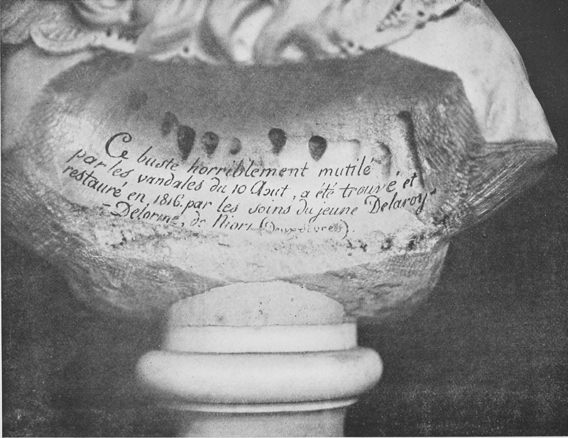 We may confidently say, however, that two separate messages were sent to the palace. The first was a verbal message to cease fire, which reached Hervilly, who was directing the whole operation. Hervilly, as we know, refused to obey, having the action well in hand, and being yet confident of success. Either after the southern end of the Tuileries had been forced by the populace (who, as we now know, turned the flank of the defence by fighting their way through from the Long Gallery), or while that capital incident was in progress, Durler, a captain of the Swiss Guards, commanding no more than a company, but 410probably the company which had the best chance of retreating, asked for orders. It is difficult to believe that he would have done so unless the position was already desperate. The order which reached him was a repetition of the former one, but it was written, not verbal, and it is this second written order the facsimile of which forms the frontispiece to this volume. Durler did not see it written. He had gone in person to learn what he should do, but he was back again with his men before the note was handed to him. He was a perfectly honest and trustworthy man, and his testimony remains. It is evident from this testimony that, by the time the note came, all was over.