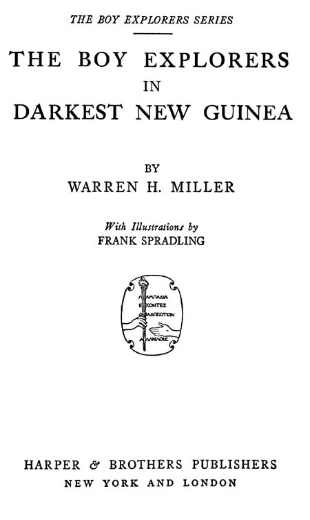 The curator regarded them with feelings of quiet satisfaction. Their dash into Dutch New Guinea had been a success. They had brought back an immensely valuable natural-history collection, and mineral information to the world that would soon add a vigorous trade settlement to those two forlorn Dutch military posts, six hundred miles apart, on a wild and savage coast. But above all he rejoiced in the spiritual results of the expedition with deepest pride. Those two boys had shown courage and resourcefulness far beyond their years; they had faced privation, danger, and battle with a grit and determination, a cheerfulness and lack of grouch, that had proved them men after his own heart. And to serve the cause of science they had refused the opportunity for fabulous wealth and all the ease and comfort that money can give. With them and his two devoted natives[236] the curator felt that he had a scientific organization that would do. Yes, it would do mighty well!