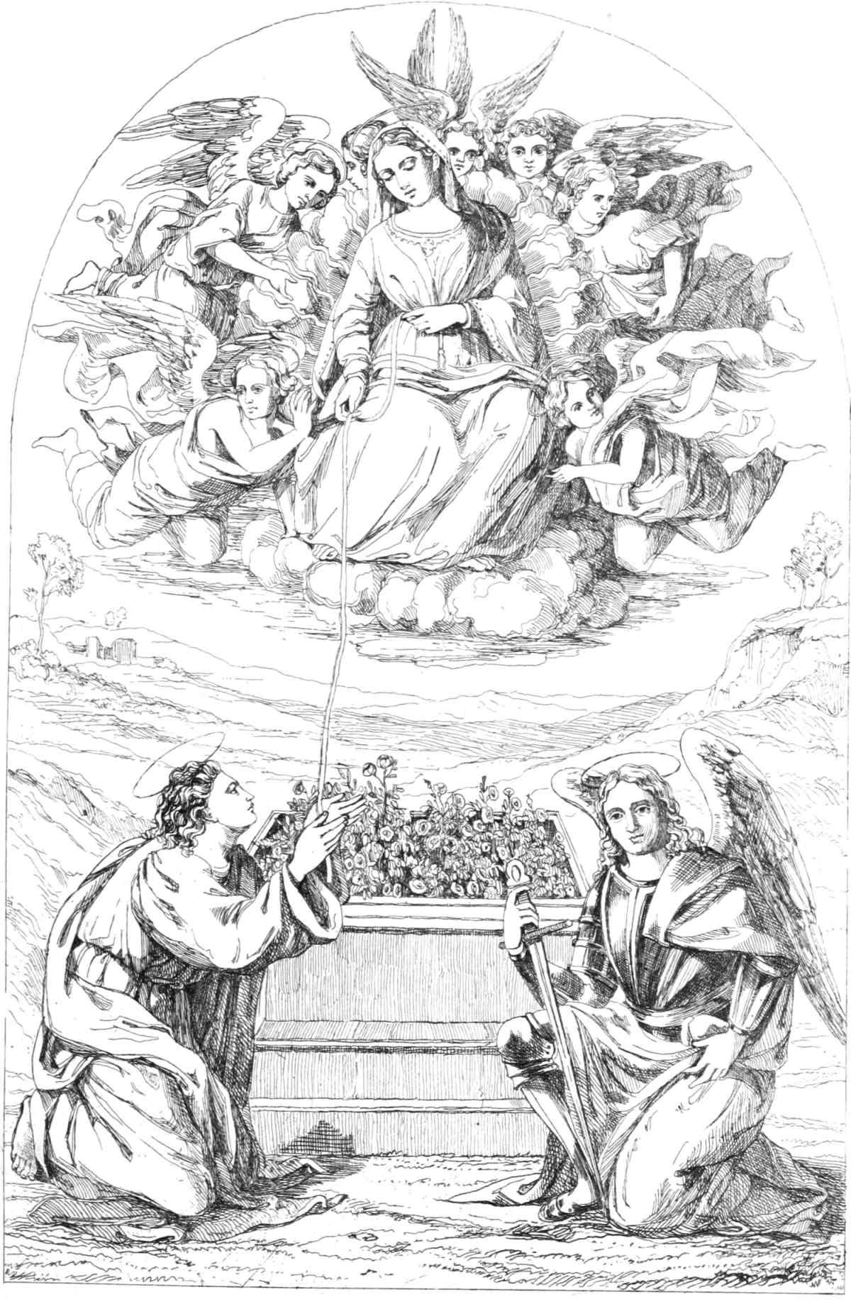 The legends of the monastic orders, and the history of the Franciscans and Dominicans, considered merely in their connexion with the revival and development of the Fine Arts in the thirteenth and fourteenth centuries, open so wide a range of speculation,—the characteristics of these religious enthusiasts of both sexes are so full of interest and beauty as artistic conceptions, and as psychological and philosophical studies so extraordinary, that I could not, in conscience, compress them into a few pages: they form a volume complete in itself, entitled ‘Legends of the Monastic Orders.’