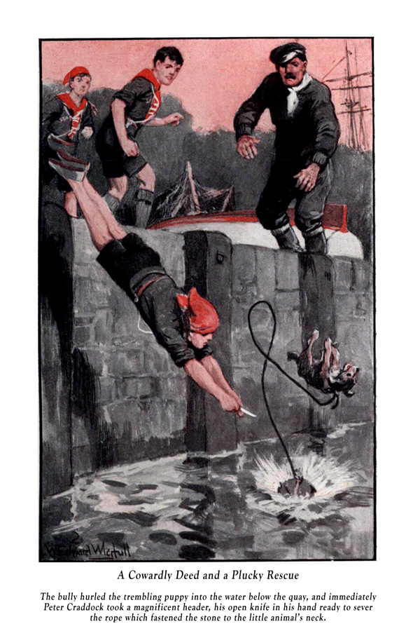 “Look after Molly,” he reiterated. “She’ll be after me if you don’t.” And, handing the coiled portion of the rope to Mr. Grant and Brandon, Craddock rushed into the water.