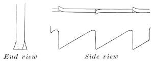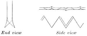 Beside the end views of the two kinds of teeth, the side views, which are also different, are shown in Figs. 12 and 13.